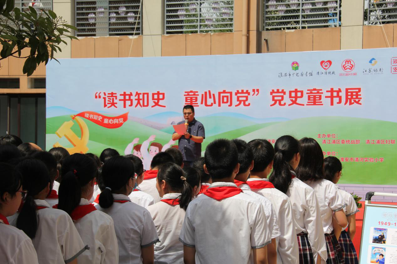 2021年是中国共产党建党一百周年。一百年风雨兼程,一世纪沧桑巨变。为了培养广大青少年爱党、爱国、爱家乡的思想情感。5月31日,由淮安市文化广电和旅游局、 清江浦区委统战部、清江浦区妇联、淮安市少儿图书馆、知行空间 、淮安市清河实验小学、江苏银行联合举办“读书知史 童心向党”主题童书展在清河实验小学隆重举行,为该校2200余名师生送去了别开生面的红色文化活动。