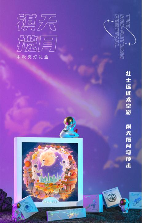 穿越古今,人类已实现登月的梦想。2021中秋,送你一张登月票,愿追逐不停息、早日登上属于自己的月球。这是“祺天揽月”中秋月饼礼盒对于登月的一次美好诠释,同时集精湛纸雕工艺、严苛食材、环保设计于一体,让一份国潮礼充满了科幻的浪漫。