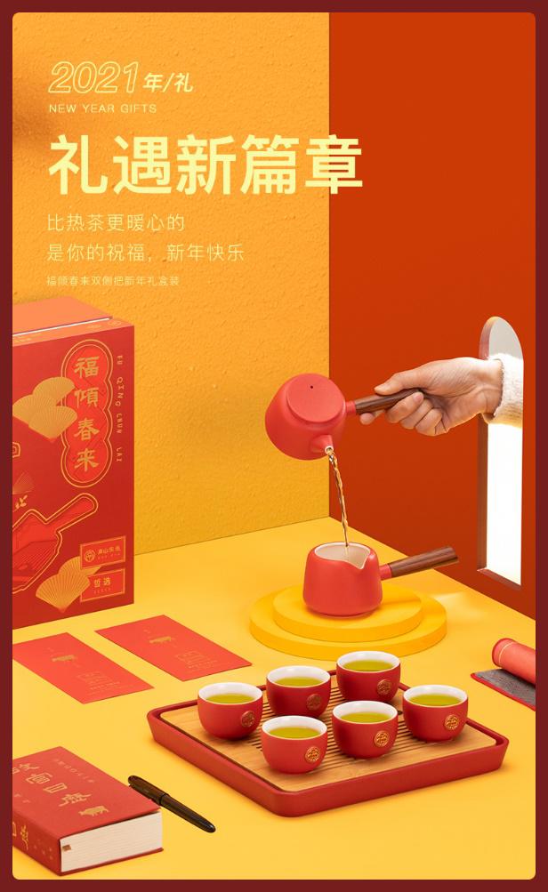 这是一套你一眼就会相中的春节茶器礼。它采用“春”和“福”对称设计,贴心防烫,寓意美好。11件套礼赠周全、美观实用,比茶更暖的就是这份心意。