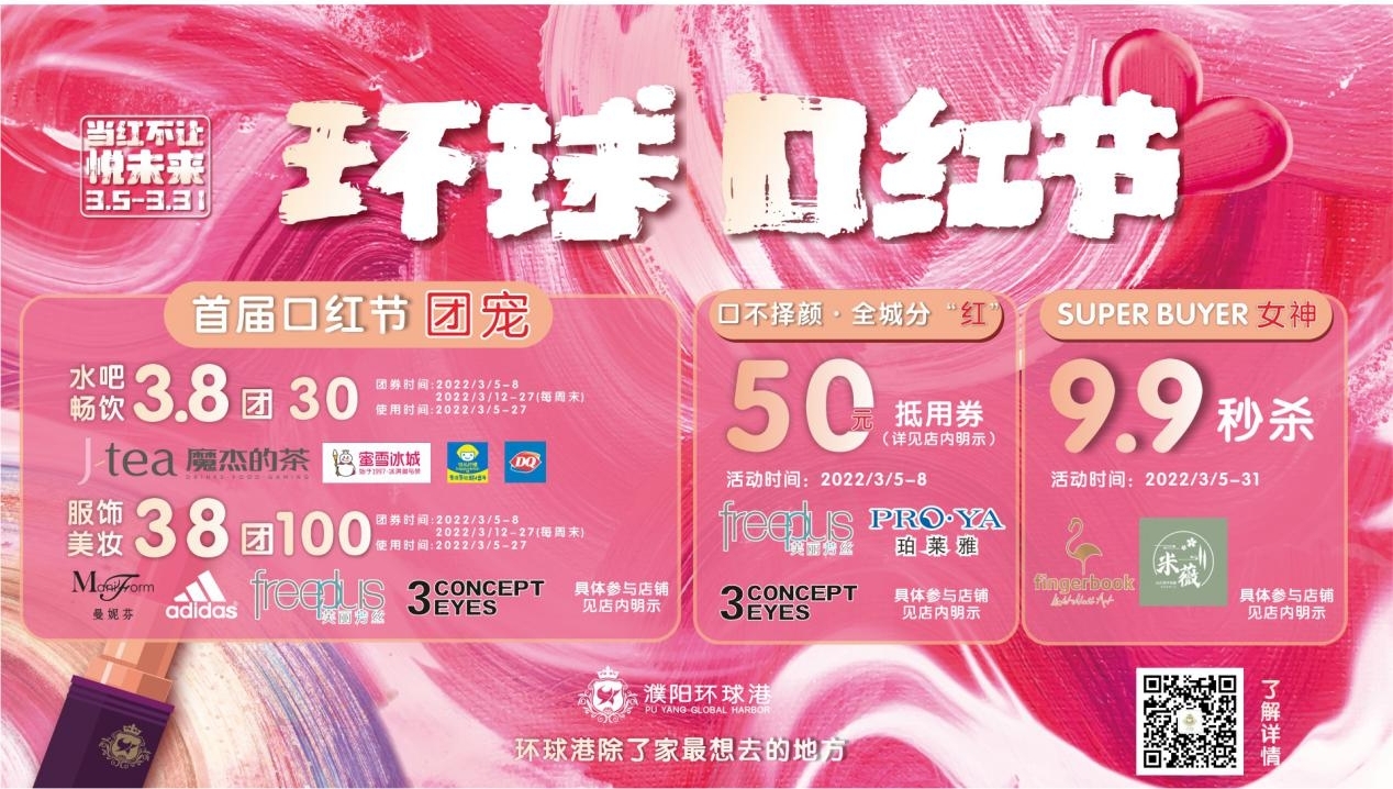 2022年3月6日,“微笑很美”女性才艺沙龙暨濮阳环球港环球口红节启幕仪式,在1楼中庭舞台正式开启。