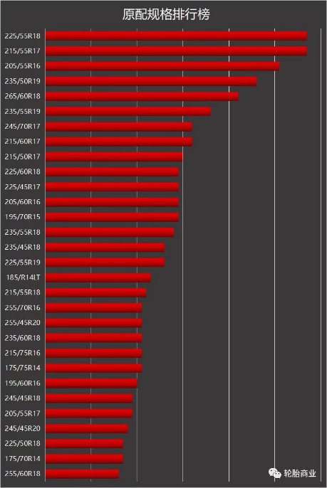(2021年上半年轮胎原配规格排行,图片来源于“轮胎商业”)