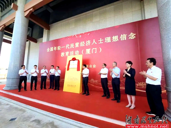中央统战部副部长,全国工商联党组书记、常务副主席徐乐江,福建省委常委、厦门市委书记崔永辉共同为“全国民营经济人士理想信念教育基地”揭牌。全国工商联党组成员、副主席李兆前主持揭牌仪式,福建省、厦门市领导王永礼、王光远、王雪敏、连坤明等以及来自全国各地100多位年轻一代民营经济人士代表参加仪式。