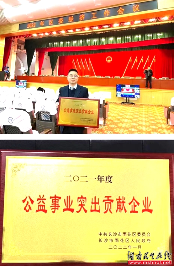 ▲ 2022年1月,“三十九铺”被长沙市雨花区委、雨花区人民政府授予“公益事业突出贡献企业”