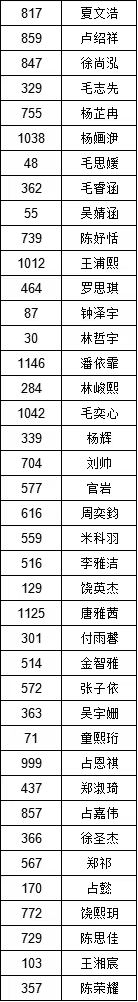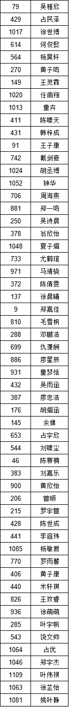 根据预报名学生报名时间先后顺序,为参加随机摇号派位的学生每人分配一个序号(号码),即第一个预报名学生为1号,第二个预报名学生为2号……依此类推。该序号为参加摇号派位学生的唯一编号(学生名单及编号在摇号派位前在直播群公布)。