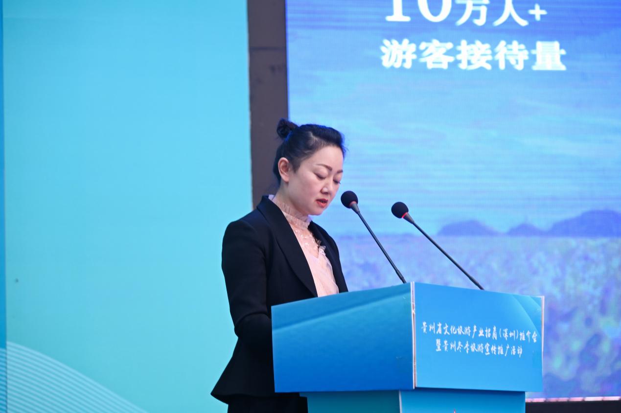 冬游贵州,正当其时。贵州省委宣传部副部长、省文化和旅游厅党组书记、厅长孙含欣在会上发布贵州冬季旅游优惠政策,向与会嘉宾讲解优惠活动细则。孙含欣副部长提到,2022年12月16日起至2023年2月28日,来黔游客可享受免门票、自驾五折、住宿五折、商品五折等系列优惠。为丰富冬季旅游产品,贵州还精心推出“温泉康养、南方滑雪、乐享民宿、民族节庆、红色旅游、暖冬小三亚、酒旅之行、美食购物”八大冬季旅游主题产品,涵盖康养度假、运动体验、休闲旅游、研学旅游、冬季旅居、旅游购物等旅行模式,品种繁多,玩法多样,老少皆宜。孙含欣副部长诚挚邀请广大深圳市民前往贵州大地旅游,领略黔山秀水,发现贵州之美、感受贵州之好,亲身体验“走遍大地神州,醉美多彩贵州”的独特魅力。