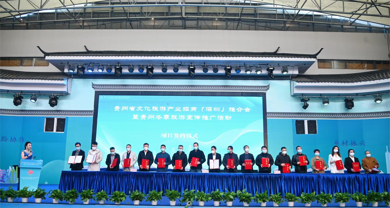 会上,贵州省委常委、宣传部部长卢雍政作贵州文旅产业招商推介。他提到,贵州与广东同属泛珠区域,“我住珠江头、君住珠江尾”,两地交流合作源远流长。党的十八大以来,广东坚决贯彻习近平总书记关于东西部扶贫协作的重要指示精神,把帮扶贵州作为重大政治任务,为贵州按时打赢脱贫攻坚战和高质量发展作出了重要贡献,助力贵州创造了赶超进位的“黄金十年”,携手演绎了粤黔版“山海情”。粤黔两省文旅资源各具特色、合作空间巨大、发展前景广阔。愿以文旅产业协作为契机,深化新一轮东西协作,推动粤黔两省合作巩固前缘、再谱新篇,助推国内国际旅游恢复生机、焕发活力。山地公园风景独好,多彩贵州四季俱美。卢雍政部长真诚期待深圳的有识之士到贵州参观考察、休闲度假、投资兴业,同念山海经、合奏共赢曲、共圆强国梦。