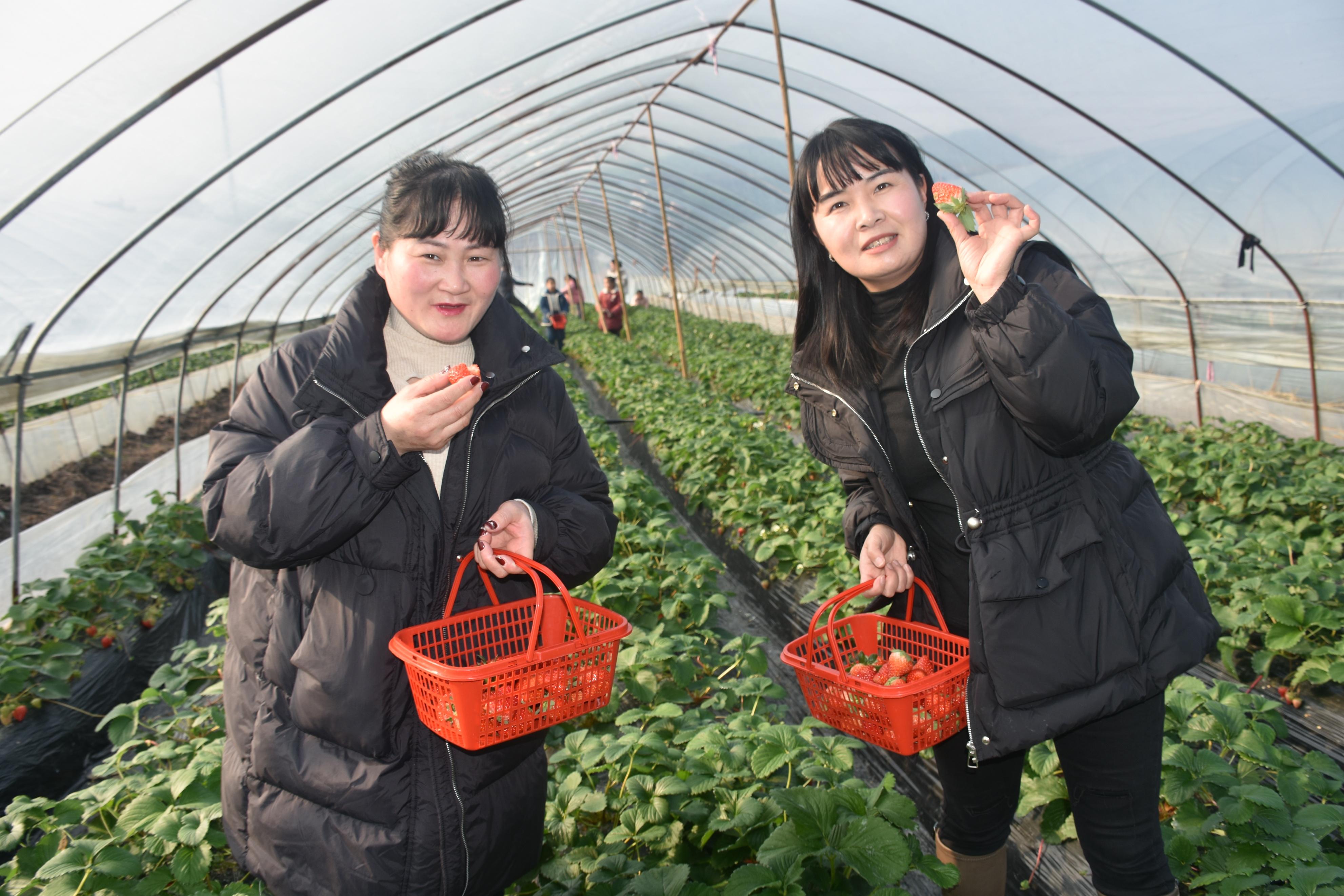 2023年新年伊始,江西铅山县葛仙山镇杨村村依凡草莓采摘园迎来一派丰收的景象,上饶、弋阳、横峰、福建武夷山和本地等周边的游客络绎不绝来到采摘园,采摘草莓。