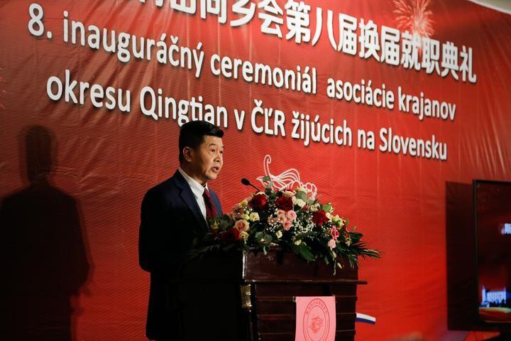 王霁公参代表中华人民共和国驻斯洛伐克共和国大使蔡革先生和使馆祝贺青田同乡会换届就职典礼成功举行,向陈志光会长所做出的辛勤努力和积极贡献表示感谢,祝贺徐来先生当选新任会长。王霁公参充分肯定了以青田同乡会为代表的旅斯华人为中斯关系发展作出的贡献和在凝聚侨心方面发挥的重要作用。他表示,“希望徐来全身心投入支持祖国、服务侨界、配合使馆的工作中去,不辜负大家的信任。希望青田同乡会继续调动一切积极因素,团结一切可以团结的力量,推动全体侨胞热诚地投入到中国式现代化建设中。在回馈当地社会,促进中斯关系进一步发展中作出更多实事好事,推动侨胞实现转型升级,进一步服务祖国高质量发展和高水平对外开放,在中国伟大民族复兴的新征程中,画出最大的同心圆。”