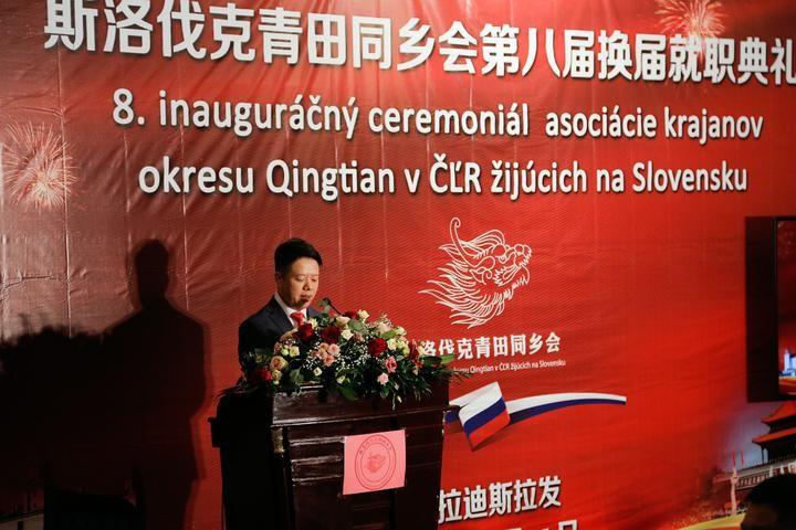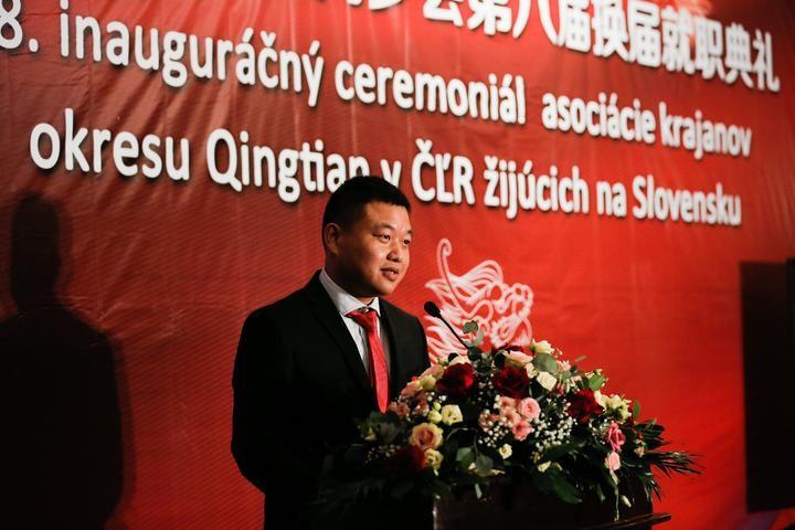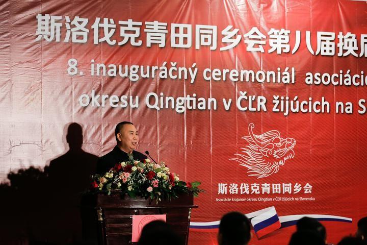 斯洛伐克社团联合会季新炎会长,代表兄弟社团致辞。季新炎会长向陈志光会长为青田侨胞所做出的贡献表示感谢,向徐来会长履新表达了祝福。他回顾了斯洛伐克青田同乡会创会往事,对在困难时期艰苦创业的努力颇有感慨,也为身为青田人而感到骄傲。季新炎会长寄语青田同乡会各项工作在新的时期更进一步,为青田同胞、旅斯华人和祖国建设做出新的贡献。