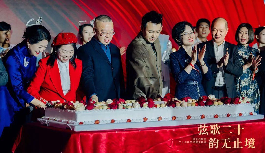 “愿世间所有的美好都如约而至,让你不染忧伤,只生欢喜。愿余生所有的岁月都温柔待你,你只需听从你心 无问东西。”在《愿世间所有的美好如约而至》的歌声中,领导嘉宾共同推出绿之韵二十周年的生日蛋糕。随后,在全场所有嘉宾的共同见证下,满怀着对二十年时光的美好回忆,满怀着对所有关心支持的感恩,满怀着由衷的敬意和美好的畅想,全场举起酒杯,献上最诚挚的祝福:祝绿之韵集团二十周年生日快乐!祝福绿之韵集团的明天更加美好!