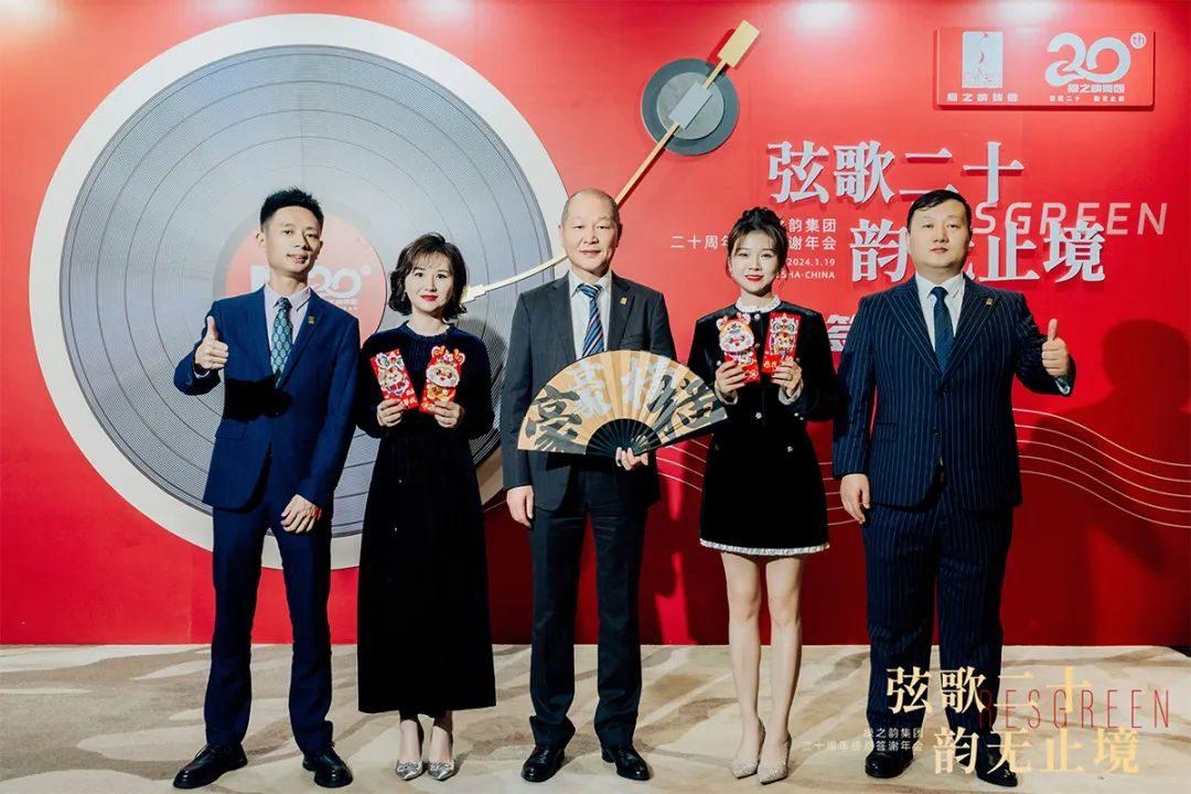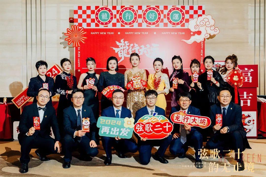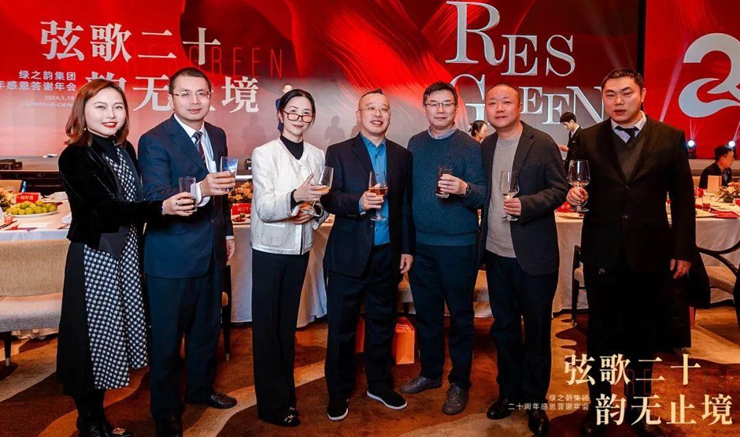 2024年1月19日,“弦歌二十 韵无止境”绿之韵集团二十周年感恩答谢年会在长沙隆重举行。大会邀请了中国著名词曲家、音乐人、中国音乐家协会副主席何沐阳,湖南省政府参事(原省政府副秘书长)罗建军,湖南省公安厅原党委副书记、常务副厅长胡旭曦,湖南省工商联(总商会)党组成员、副主席漆平波,中共长沙市委常委、统战部部长刘汇,公安部消防局高级警官培训基地原主任谌再来,湖南省政协常委、经济科技委员会副主任彭继球,空政歌舞团国家一级演员、湖南省音乐家协会副主席易秒英,株洲原市委常委、军分区政委胡鹏飞,湖南省工商联办公室主任罗江天,湖南省工商联会员处处长许量,中共长沙市委统战部副部长、市工商联党组书记何惠风,中共长沙市委统战部副部长、市侨办主任杨光华,长沙市雨花区人大常委会党组书记、主任冯聪龙,益阳市安化县政协党组书记、主席胡能华,长沙市工商联党组成员、副主席王准,长沙市工商联二级调研员、市商协会组织联合党委书记张明刚,安化县政协副主席、县工商联主席刘畅术,著名战略研究专家、北大、清华新营销总裁高级研修班特邀授课导师胡远江,湖南省化妆品经营行业协会会长易敬平,湖南省中医药研究院中药资源研究所党支部书记、所长、绿之韵集团特聘专家张水寒,湘赣粤港澳中医药全产业链协同发展联盟中药材合作中心主任、湖南农业大学博士生导师、绿之韵集团特聘专家曾建国,中国交通银行湖南省分行副行长周良成,长沙市安化商会党支部书记、执行会长、迪姆锦源(湖南)科技有限公司董事长吴余生,长沙市安化商会执行会长、湖南东华云通软件有限公司董事长夏晓辉,香港长沙联谊会副会长蔡达、刘毅、闵玉玲等领导嘉宾出席会议。绿之韵集团董事长胡国安,总裁劳嘉,常务副总裁胡均安携高管团队副总裁刘淑娟,副总裁夏运良,营销中心总经理戴三省,常务副总经理梅其慧,副总经理胡武安,党委书记刘云,国际商学院执行院长黎芋成,副总经理、绿韵碧波庭公司总经理黄莎莎等领导和全球战略领导人碧波庭贸易(上海)有限公司创始人李水莲、碧波庭贸易(上海)有限公司董事长刘时达、长沙绿韵汇成健康科技有限公司总裁李继前、湖南绿韵好微生健康管理有限公司董事长易园翔、湖南绿韵数字化健康科技有限公司董事吕秀玲、湖南绿韵数字化健康科技有限公司董事长兼总裁彭铭、湖南绿之韵微看科技有限公司总裁范林,湖南云来科技公司董事长刘尚线等领导以及绿之韵集团全体员工近500人共同见证这一重要时刻。