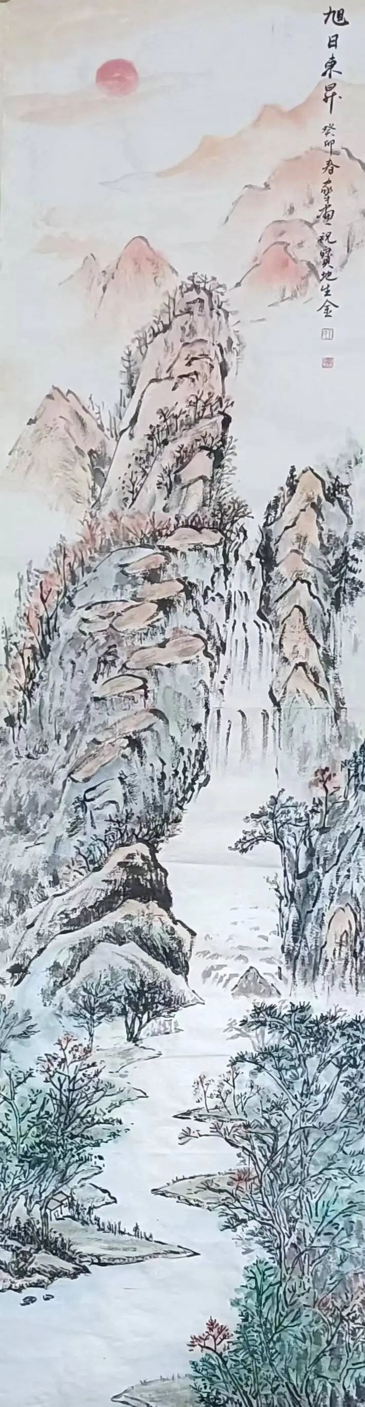 王家才老师的国画作品《有余图》是一幅充满生活情趣与人文气息的画作。画面以四尺整纸的横幅形式呈现,构图巧妙,笔触细腻,让人仿佛置身于那宁静的湖边,感受着孩子们的欢声笑语与大自然的和谐之美。