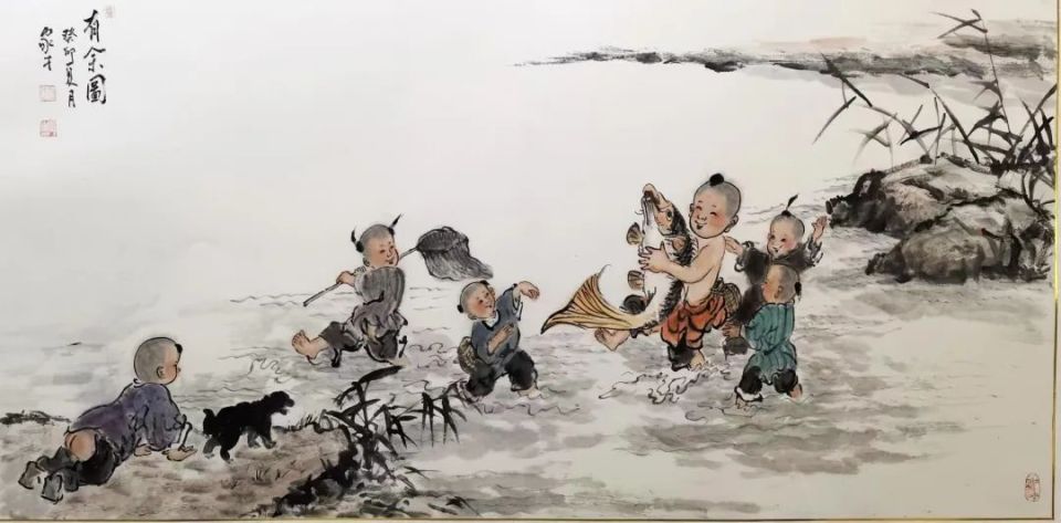 王家才国画《有余图》赏析:童真与自然的和谐乐章