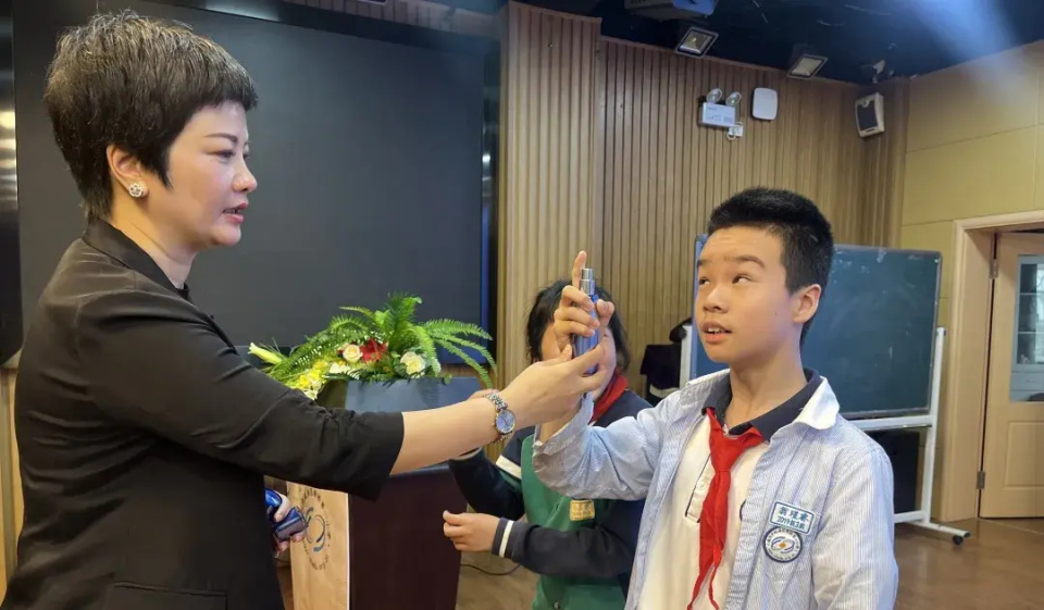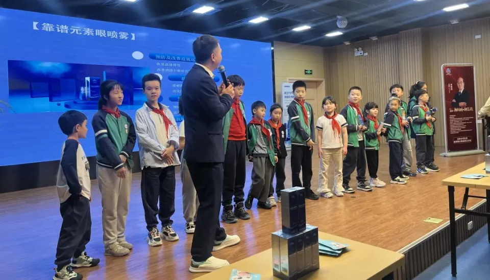 在阵阵热烈掌声中上海易源堂集团营销策划总监曹斌先生,对上海易源堂集团文化与研发进度进行介绍,并讲解了“靠谱元素眼喷雾”的功能与对眼睛的作用。向同学们详细讲解了眼疾病的诱因及危害。活动期间,曹斌先生以趣味问答、游戏互动等方式,让同学们进一步了解眼睛的重要性,引导同学们正确用眼,预防眼部近视,保护眼睛。现场带领孩子们做眼部保健操,并教会孩子们如何正确使用眼喷雾产品。