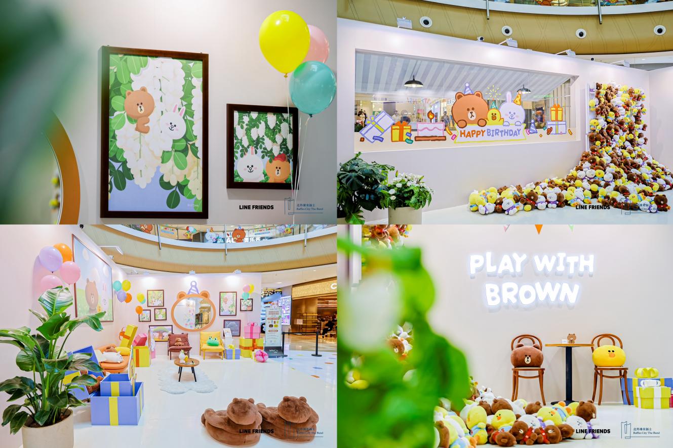 中国,上海 —— 在这个缤纷夏日,国际创意工作室LINE FRIENDS于旗下人气形象BROWN布朗熊生日之际,携手上海知名商业综合体北外滩来福士在8月2日至8月25日间打造了一场以“PLAY WITH BROWN”为主题的布朗熊客厅派对快闪,并将于8月上旬在上海北外滩来福士西塔57楼层空中花园限时推出多场“最高的布朗熊生日会”惊喜庆生活动。充满欢乐庆生氛围的萌趣IP美陈布置、DIY互动、商铺联动打卡玩法等为广大消费者带来兼具视觉享受和沁爽治愈的独特夏日体验,让布朗熊和粉丝走入彼此的生活半径、强化情感链接的同时,彰显了LINE FRIENDS致力推动IP与商业地产融合发展的品牌目标。