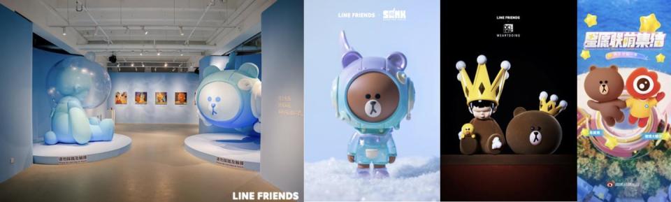 LINE FRIENDS积极携手异界伙伴合作融创,合力探索IP业态的多元化新玩法、新模式、新变革。LINE FRIENDS官方旗舰店于2024年1月携全新多元IP重磅回归线下,正式入驻上海美罗城。此前,品牌曾于2023年推出以创意互动产品COLLER为主体的多家“LINE FRIENDS轻体验店“,秉持可持续发展的绿色理念探索“IP+新零售”商业模式。在“沉浸式线下体验业态”层面,品牌先后联合上海潮流街区M+幸福里、淮海集团、野邻花园营地、SankToys、YEENJOY STUDIO等跨界品牌发力街域场景营销、乐活体验营销,并每年与中国热门城市地标景点融创“SALLY DAY城市地标行”,渗透本土消费者生活的多元行迹触点。在“IP+创新商业模式”层面上,品牌联合微博、爱奇艺、奈娃家族、孩之宝、Bilibili等品牌与平台旗下人气IP,挖掘双IP联动焕新的可能性,更联动抖音、B612、支付宝等互联网平台共创娱乐型IP+线上互动型产品。在“虚实交互的数字化发展”层面上坚持推动数字化业务,先后携手流媒体娱乐服务商Netflix(原创动画系列)、全球移动游戏开发商SUPERCELL(Braw Stars)、头部游戏公司NEXON(KartRider)等公司开展IP合作业务,并通过携手腾讯幻核推出NFT数字藏品;与VeeR共创VR快闪空间与品牌中国首部VR作品《布朗熊的惊喜派对》;携手数字艺术家打造创意裸眼3D视频等方式,真正将虚实互动落实于商业与内容的联动。在“精品化创意内容资产”层面上,LINE FRIENDS更发挥内容创作优势,携手The Pinkfong Company、快看APP、奈娃家族等头部品牌在动画番剧、漫画、游戏、单曲及MV等多维内容形式上探索多维可能性。在“细分化圈层触点定制”层面上,LINE FRIENDS持续围绕母婴亲子、露营、宠物、环保、音乐、潮玩和艺术等主力兴趣聚点圈层拓展多维业态,打造有针对性、有共鸣性的营销。