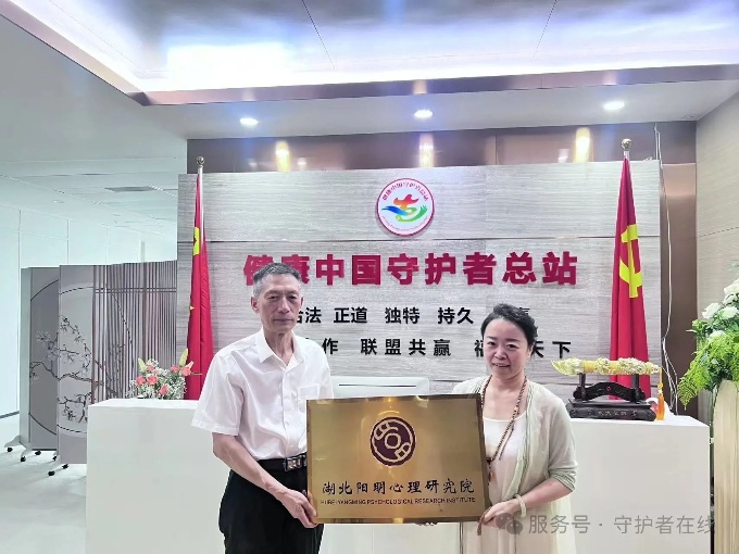 为深入贯彻落实《"健康中国2030"规划纲要》及全民健康与全面小康协同发展目标, 2025年7月4日 ,湖北阳明心理研究院与健康中国守护者总站于正式签署战略合作协议,并完成湖北阳明心理研究院全权授牌工作。