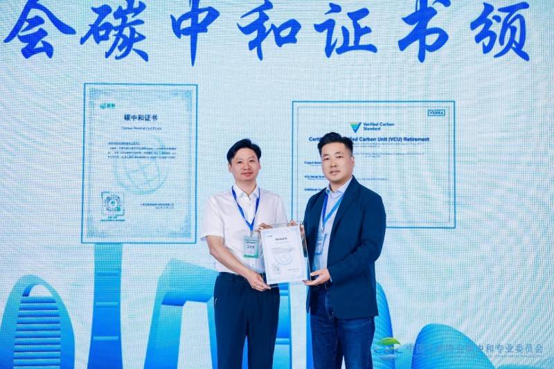 本次大会一共产生29.85吨二氧化碳当量,通过上海宝碳集团的平台定向采购30吨VCUS完成的抵消目标。会上,由上海宝碳集团副总裁谢磊为中国节能协会碳中和专业委员会常务副秘书长王挺颁发碳中和证书。