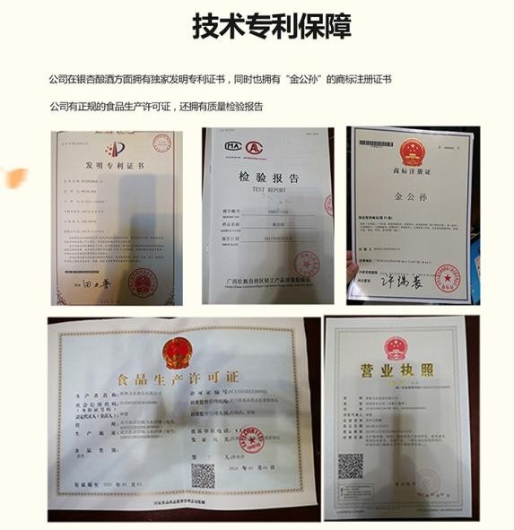金公孙力水采用独家专利技术,是国内首家掌握利用果仁纯酿白酒技术的品牌。这一技术突破了传统酿酒原料限制,使酒体自然携带银杏成分的养生功能。