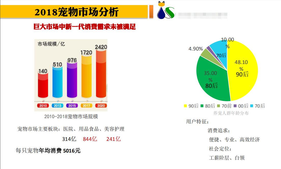 2018年,中国进入全民养宠时代,人均宠物消费5016元/年,在2019年整个宠物市场将会突破2000亿,这些用户中80%为80、90后新生代群体,他们拥有全新的消费习惯,对于宠物花费从来不会手软。但因普通宠物店投资高、压货风险大、缺乏专业技能等原因成为了普通大众投资的绊脚石。